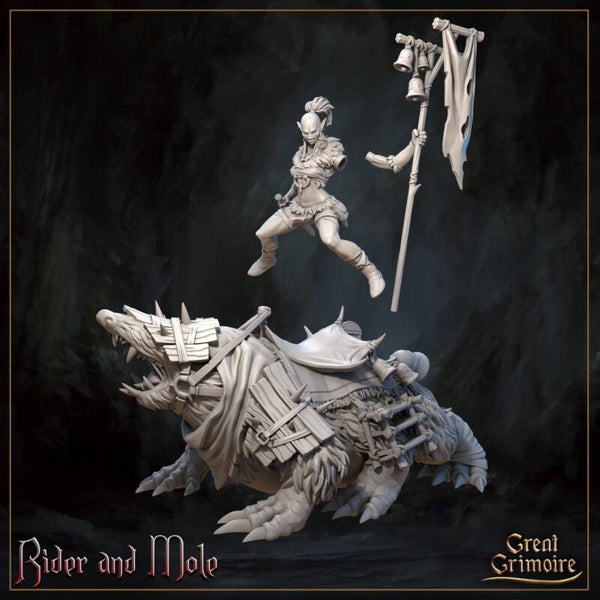Horrors of the Underground - Starnosed Mole with rider Keir - 32mm - by Great Grimoire