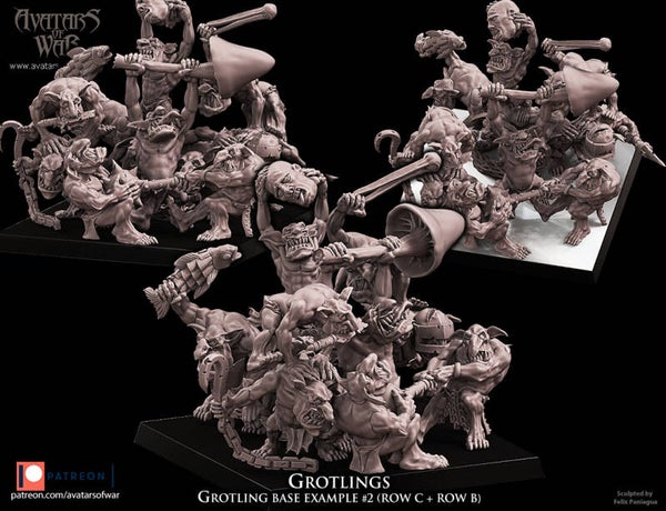 - 2x 5 different rows of Grotlings, 2 rows per base