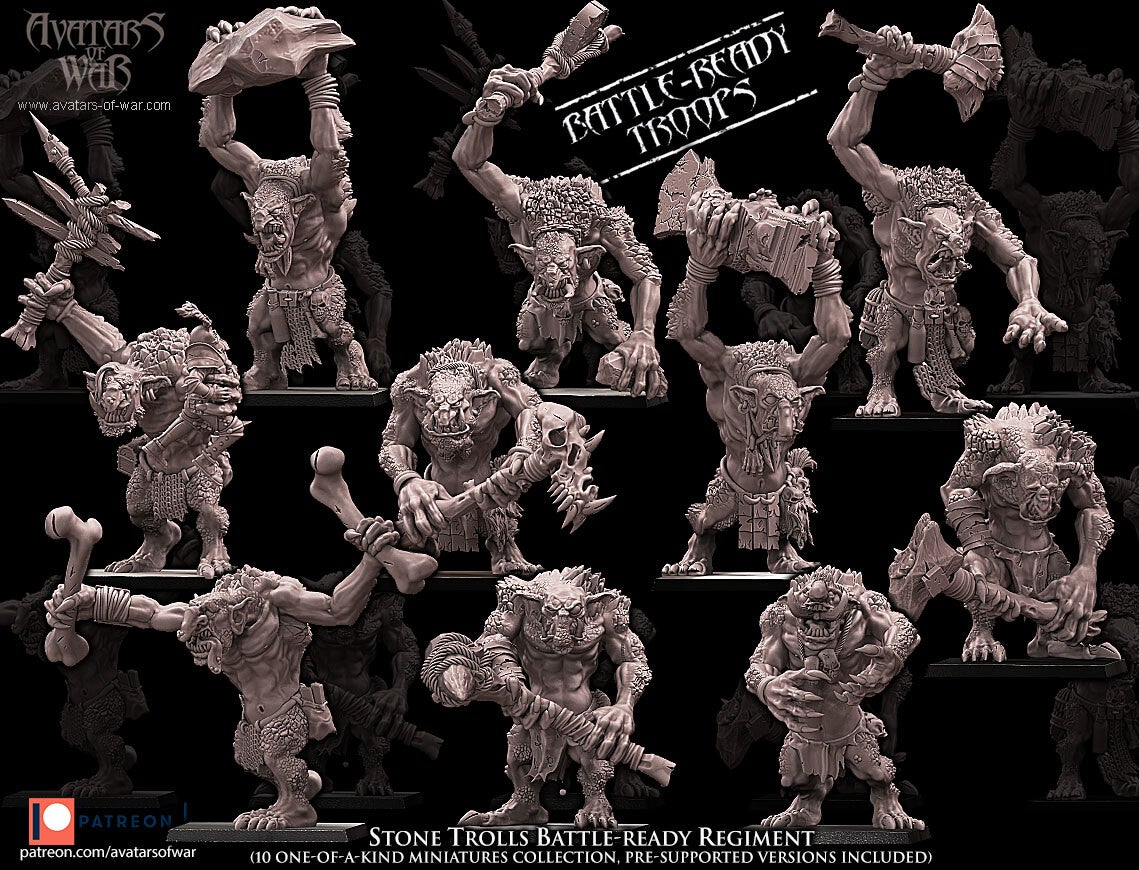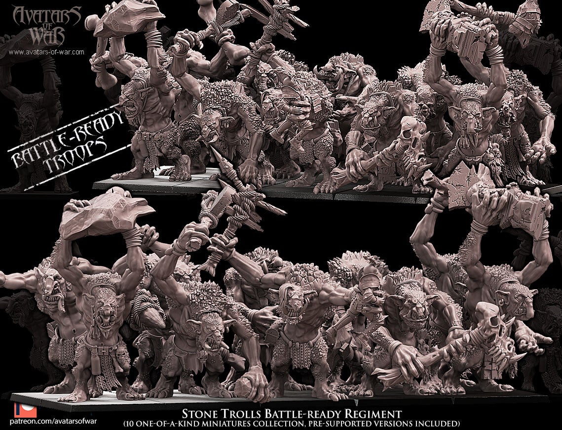 Stone Trolls 5x Battleready Lower Row - By Avatars of War