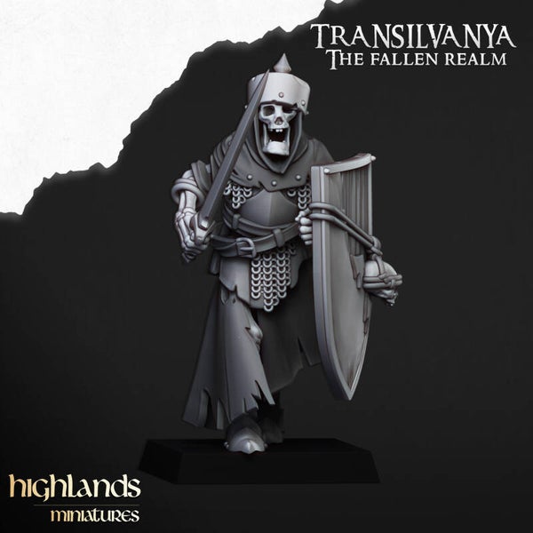 Transilvanya - Skeletal Guard 5x Sword & Shield - By Highlands Miniatures